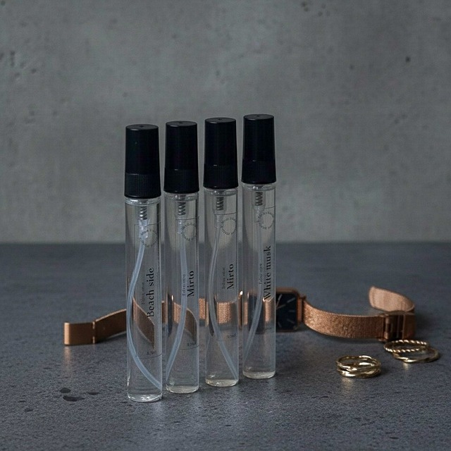 持ち歩きにぴったりな8.5mlサイズのファブリックミスト。 ポーチやバッグにすっと収まり、いつでもどこでも香りのリフレッシュを楽しめます。 6種類すべて数量限定。 お気に入りの香りとの出会いを、どうぞお楽しみください。 ⚫︎ 香りの詳細 Beach side 海風に揺れるセージと、ほのかな塩気のアクセント。 素肌に心地よい洗練されたビーチサイドの香り。 White musk ふんわりと包み込むような優しいムスクの香り。 清潔感がありながら、ぬくもりも感じる心落ち着く香り。 Botanical shower 爽やかなオレンジとローズマリーが広がり 時間とともにシダーウッドの落ち着いた香りへ 自然の恵みを感じるボタニカルな香り。 Chloe woman 優雅に広がるローズとフリージアの香り。 ほんのり甘く、洗練された女性らしさを感じる香り。 Mirto (ポップアップで人気No. 1) 地中海の風に包まれたようなユーカリとバジルの清々しい香り。 レモンとハーブが加わり自然でありながらも洗練された香り。 Blooming bouquet ローズとピオニーが調和したフローラルでやわらかな香り。 甘さと爽やかさが絶妙にミックスされた香り。 ⸻ ▷ ご使用シーン ・お部屋の空間リフレッシュに ・トイレや玄関、クローゼットの香り付けに ・洋服やカーテンにふんわり香りをプラス ・車内のリフレッシュミストとして ・外出先での気分転換に 商品情報 • 内容量:8.5ml • 用途:空間・布製品用芳香ミスト • ※肌への直接使用はお控えください • ※可燃性のため火気の近くでは使用しないでください ⚠️こちらのみのご注文の際は【ゆうパック】でのお届けとなります。 ただし、夏季の間のキャンドル【チルド便】商品と一緒にご注文いただいた場合は、すべて【チルドゆうパック】での発送となります。 その際は送料がチルド便の料金に自動的に変更されますので、あらかじめご了承ください。