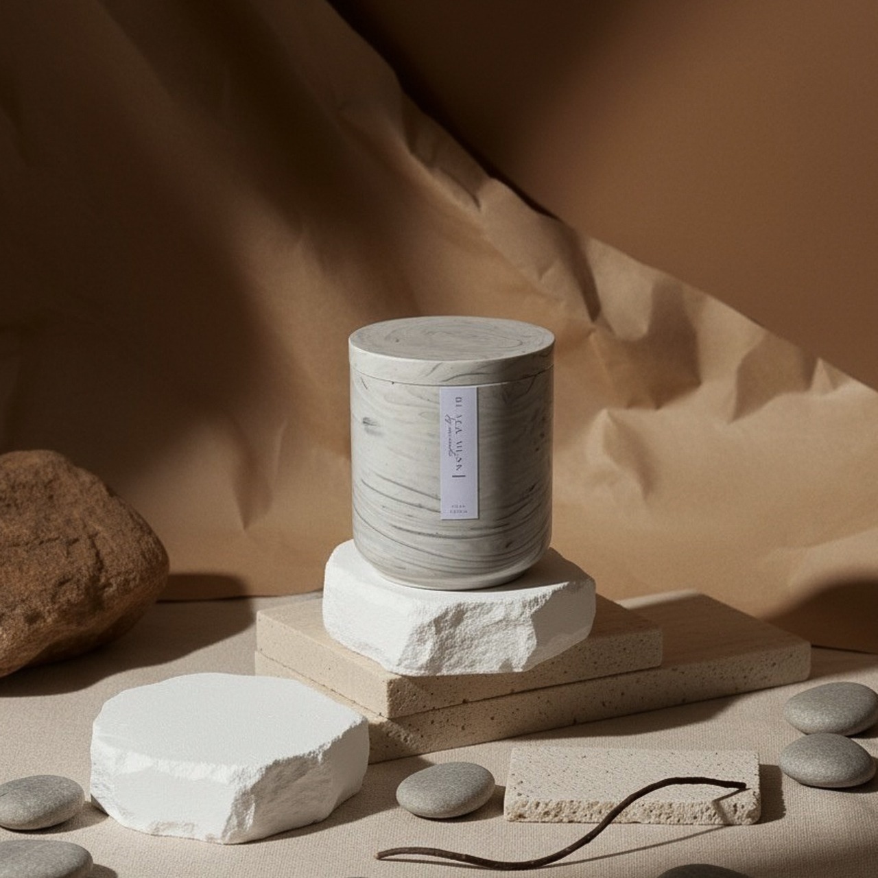 大理石のように艶めくキャンドル。光を受けて表情を変える、静かな美しさを。