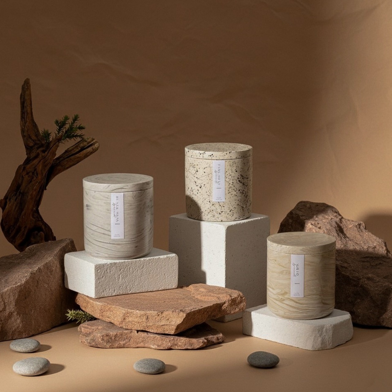 大理石のように艶めくキャンドル。光を受けて表情を変える、静かな美しさを。